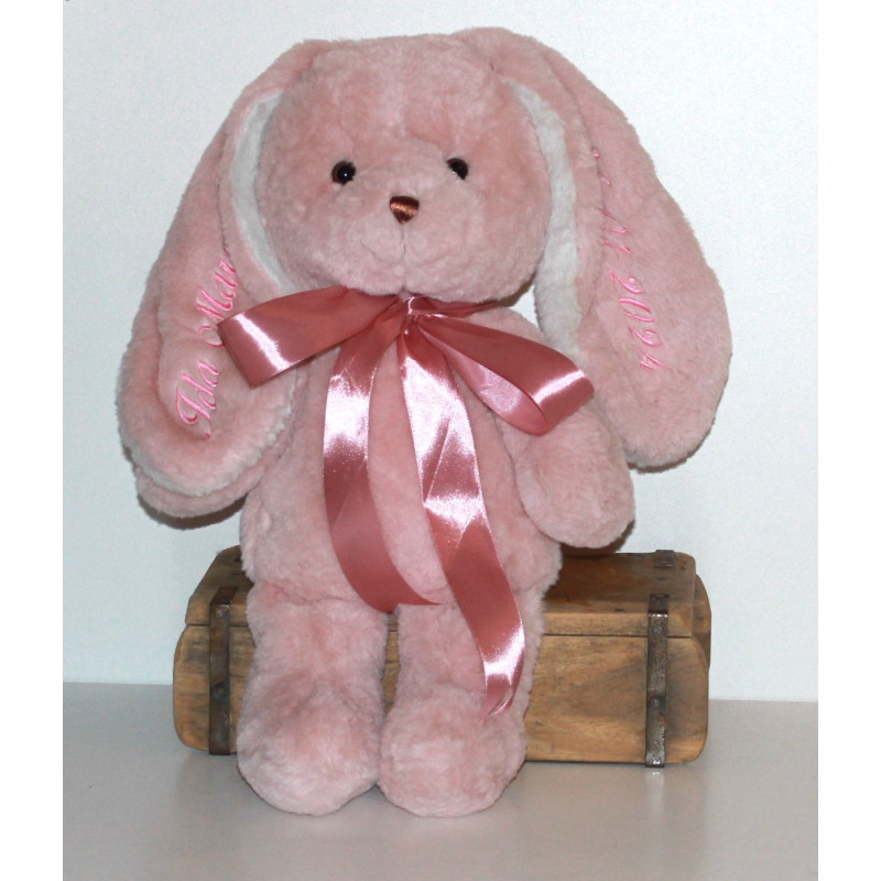Stor rosa Maja kanin fra Teddykompaniet med navn broderet i øret. Blød, personlig og krammevenlig bamse – perfekt gave til baby, barn eller nybagt familie.