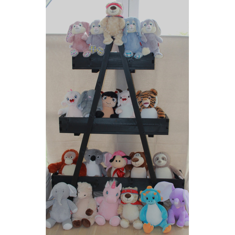 Bamsen måler omkring 32 cm i højden og er dejligt blød og krammevenlig. Den findes også i en større version, hvor broderingen placeres på maven.