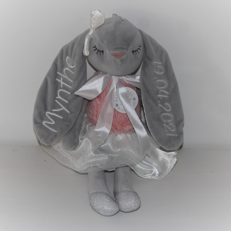 Teddykompaniet Ballerinas grå kanin bamse med navn på.