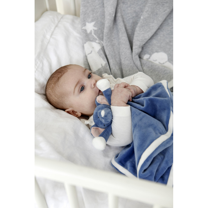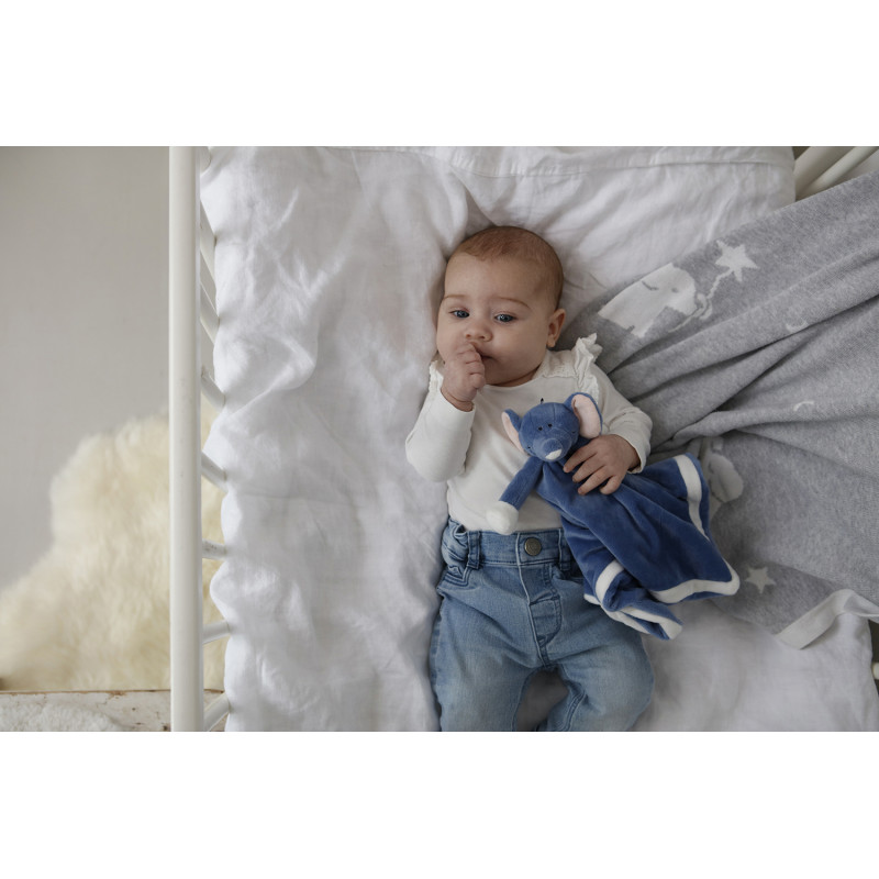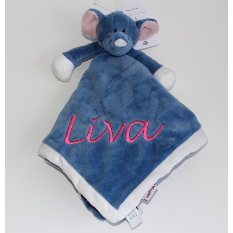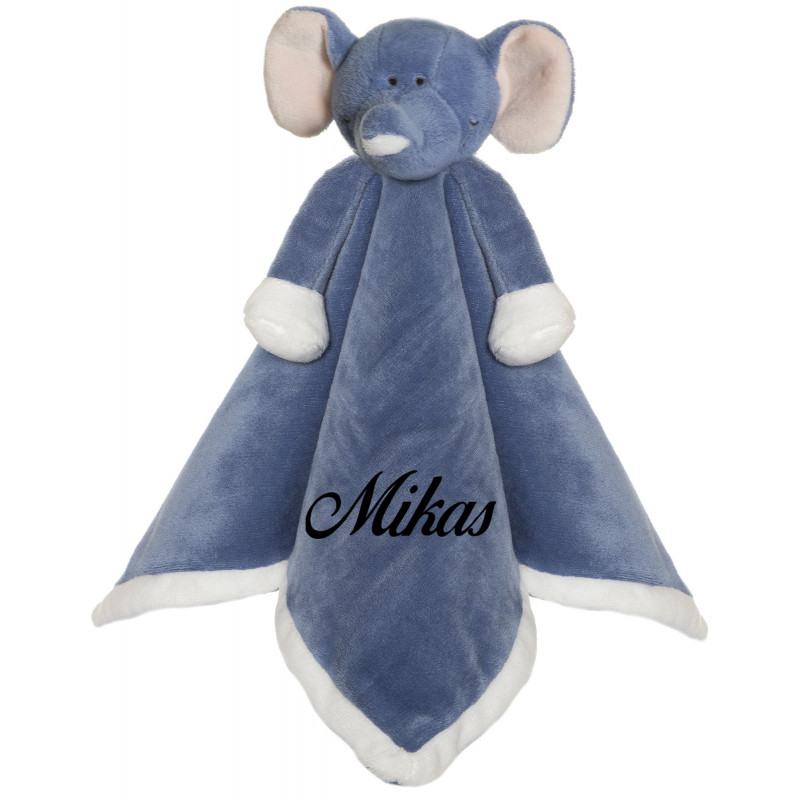Den fine blå elefant nusseklud er i god kvalitet og bliver hurtigt en god ven man ikke kan undvære ved sovetid. Og med navn på, så bliver den ikke så let væk.