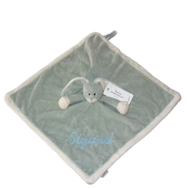 Den søde sartgrønne kanin nusseklud er i god kvalitet og bliver hurtigt en god ven man ikke kan undvære ved sovetid. Og med navn på, så bliver den ikke så let væk.