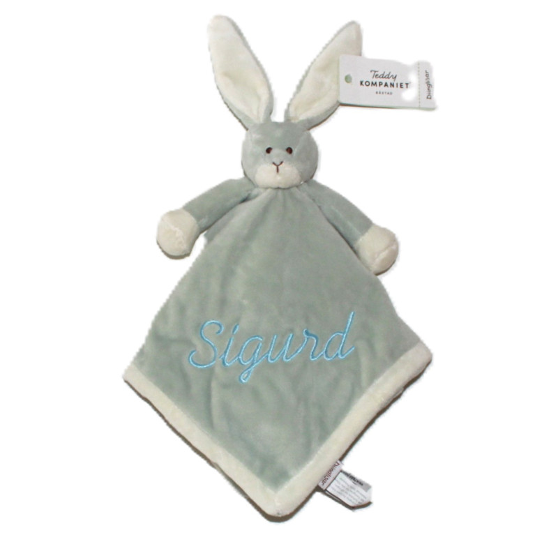 Teddykompaniet Diinglisar grå/grøn kanin sutteklud med navn på.