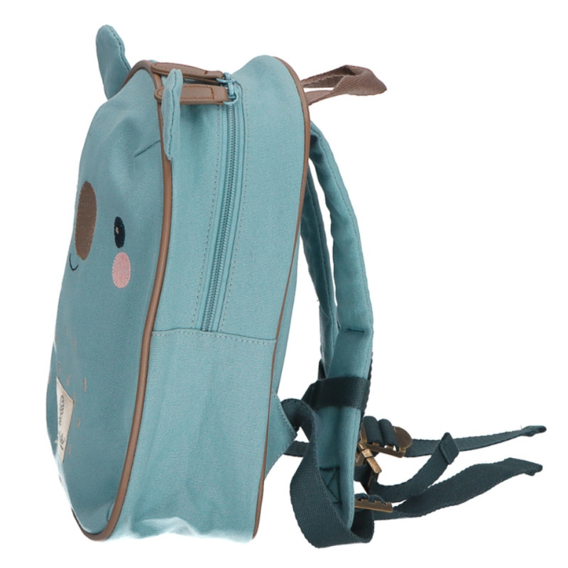 ✔ Sødt musse-design i blå med ansigt og ører ✔ Personlig rygsæk med navn broderet ✔ Perfekt til børn i børnehavealderen (2-6 år) ✔ Holdbar bomulds-kanvas med plads til drikkedunk ✔ Justerbare stropper, brystspænde og klikspænde i metal