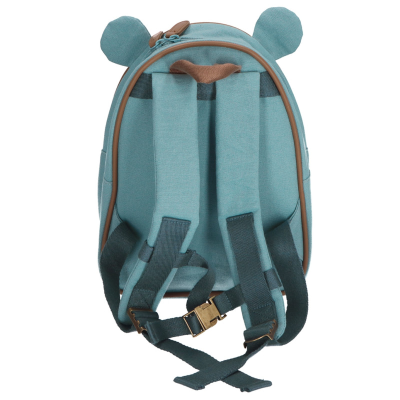 Rygsækken måler 30 x 21 cm og er lavet i kraftig bomulds-kanvas af høj kvalitet, der holder til daglig brug. Den har ét stort rum med plads til madpakke og legetøj, samt en praktisk holder til drikkedunk indvendigt i siden.