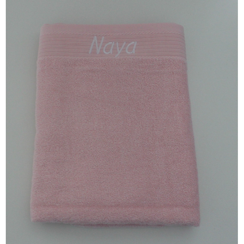 Lys lyserødt håndklæde med broderet navn – personligt og blødt