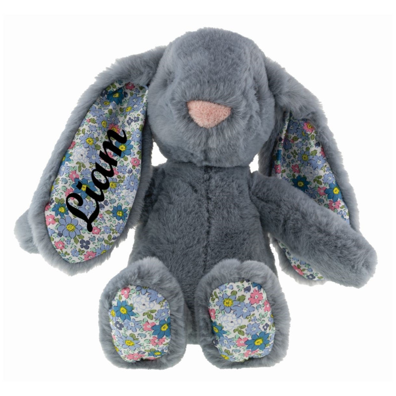 Tinka blå kanin bamse med personligt navn på og fine blomster