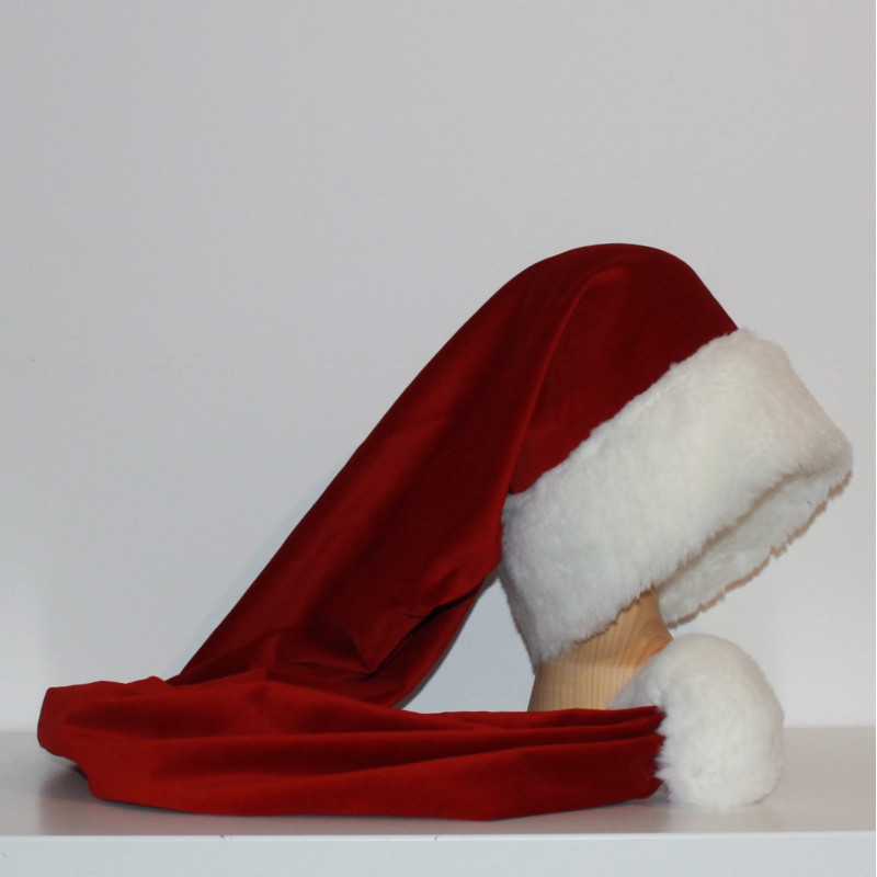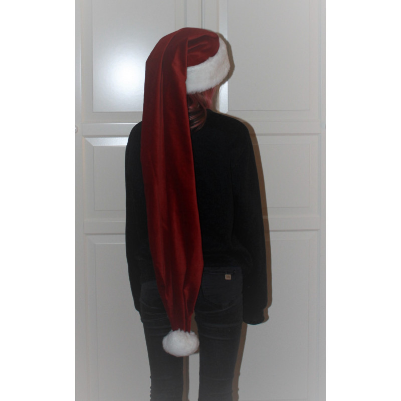 Denne nissehue er meget lang og egner sig kun til lidt større børn og voksne, den kan evt kortes af. Du kan skrive under bemærkning hvis du ønsker den skal være lidt kortere. Gerne med det antal cm den røde stykke af nissehuen skal måle.