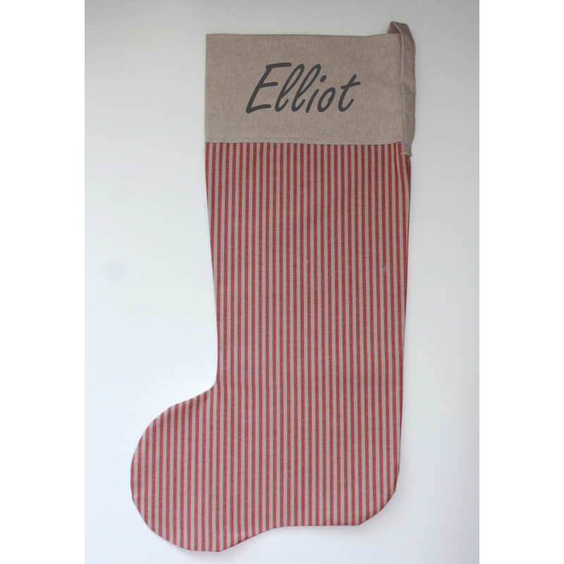 Skab en klassisk og hyggelig julestemning med denne fine julesok med smalle røde striber og personligt navn. Den stribede julesok har et tidløst og varmt udtryk, der passer perfekt til både moderne og traditionelle julehjem.