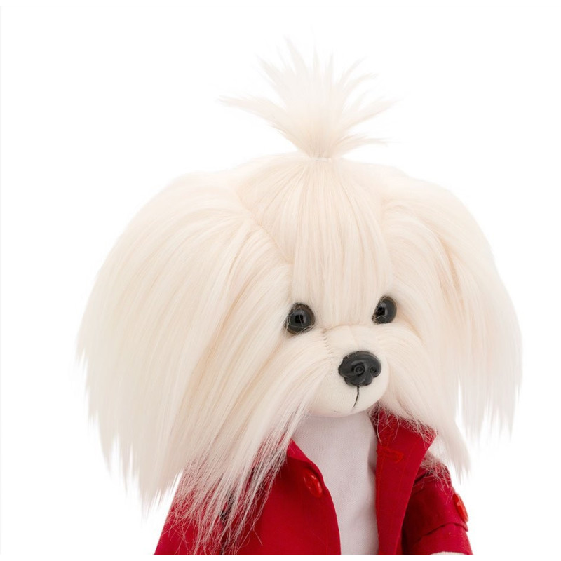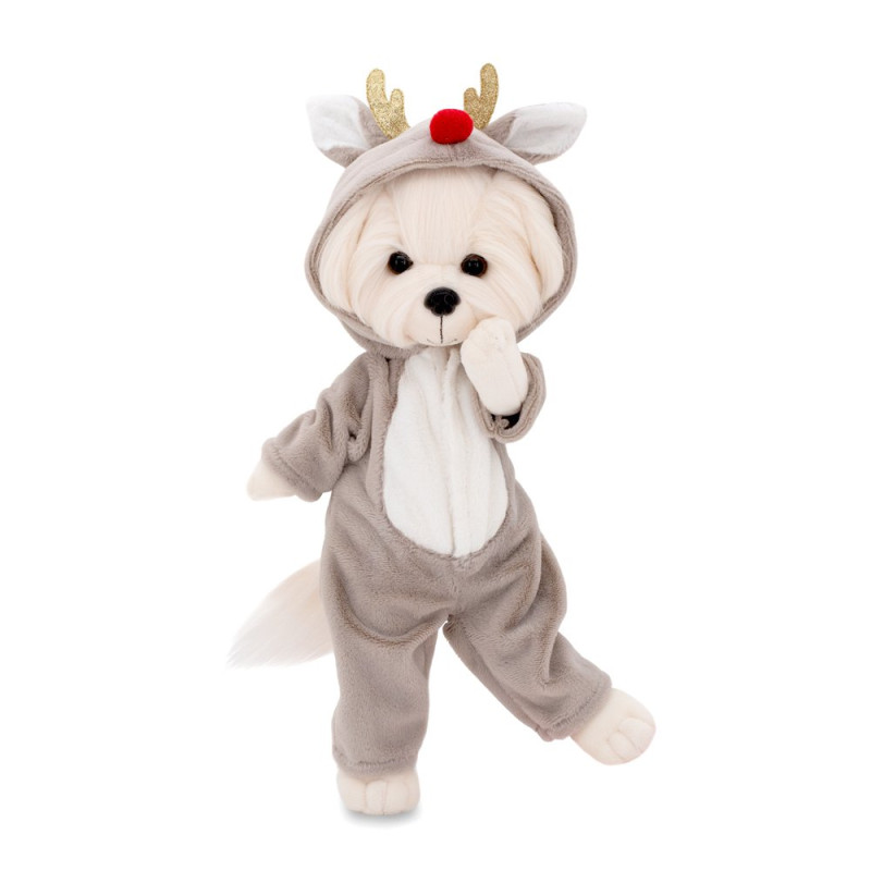 Locky Doggy Mimier en blød og virkelig lækker bamsehund på 37 cm, perfekt til børn, der elsker både bamser og hunde. Den søde rensdyrdragt med hætte giver et sødt og eventyrligt udtryk, som gør den ideel til både leg og pynt på børneværelset.
