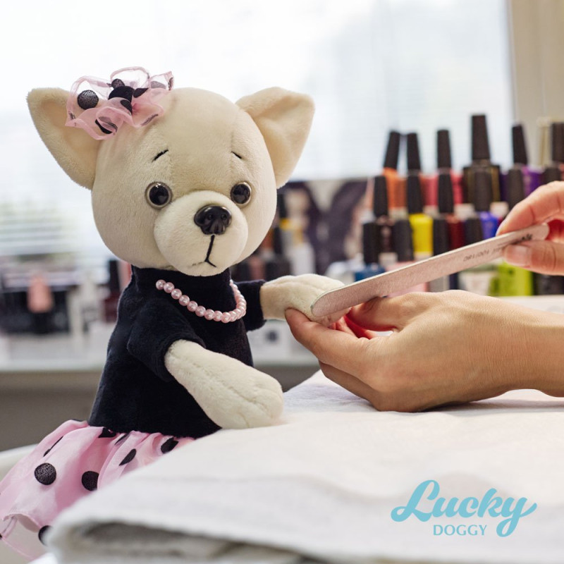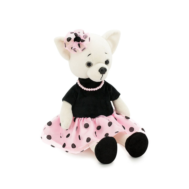 Lucky Doggy Lili Pearl med prikket skørt på.