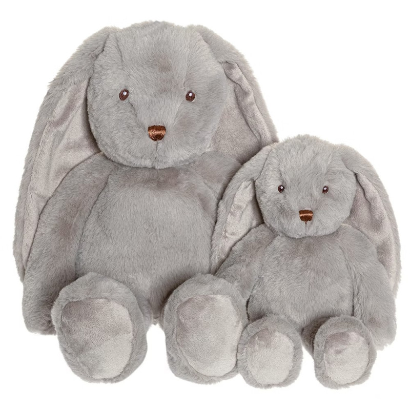 Den har en god størrelse til at tage med og ligge med i barnevognen. Kaninbamsen kommer med an fin sløjfe på.